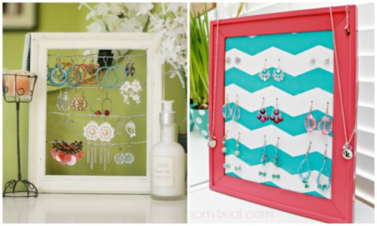 E a proposito di cornici… avete idea di quante nuove funzioni possono avere questi oggetti se riutilizzati con un po’ di fantasia? Per esempio, avreste mai pensato che una cornice potesse diventare un portachiavi? Non di quelli da portare in giro, ma di quelli a cui appendiamo le chiavi appena torniamo a casa! Io la trovo una cosa utilissima e originale (Foto 7). Per non parlare delle mini-serre della foto 8! Che idea geniale è? il risultato, poi, è davvero delizioso. Volete offrire un dolcetto ai vostri ospiti? Perché non servirlo su uno stravagante vassoio creato chiudendo la cornice con del legno grezzo o colorato? (Foto 9) Li sorprenderete! E chi l’ha detto che servono solo per disegni, foto o dipinti… in una cornice si possono esporre anche gioielli o libri! Nel secondo caso basta dare profondità assemblando altro legno di recupero (Foto 10 e 11).